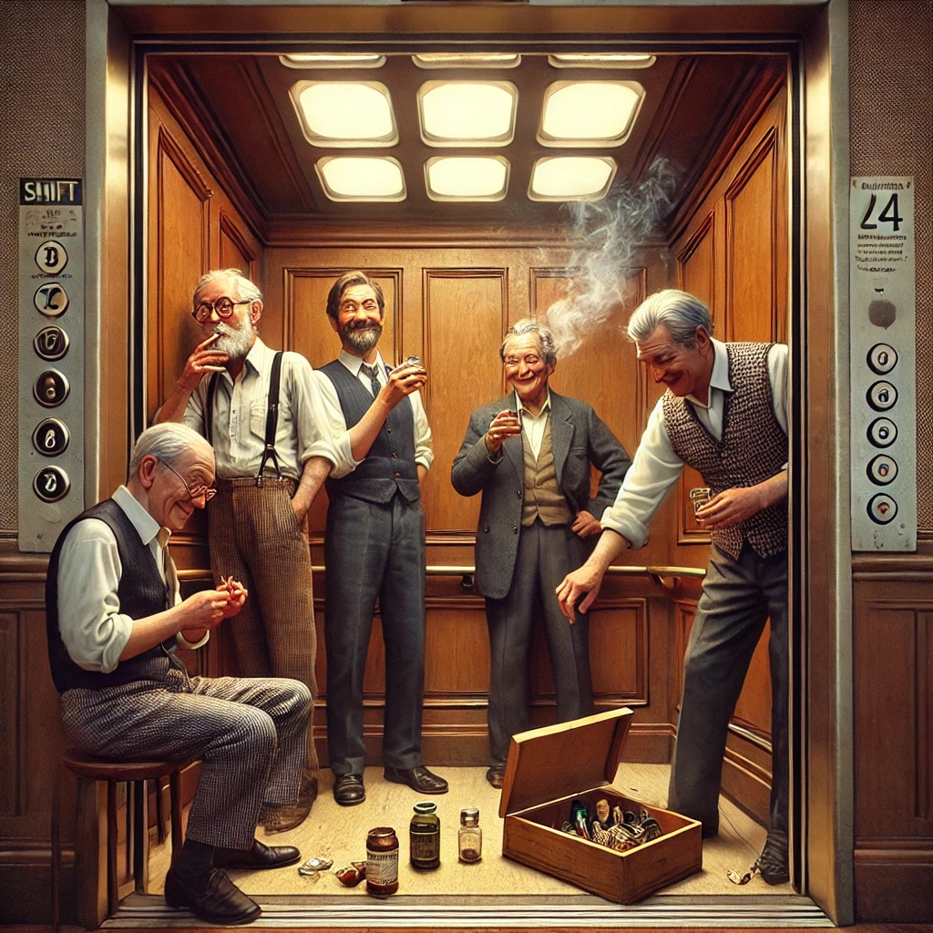 Het was een ouderwets flatgebouw in een ouderwetse straat in een ouderwetse stad. De flat had een ouderwetse lift. Ja,